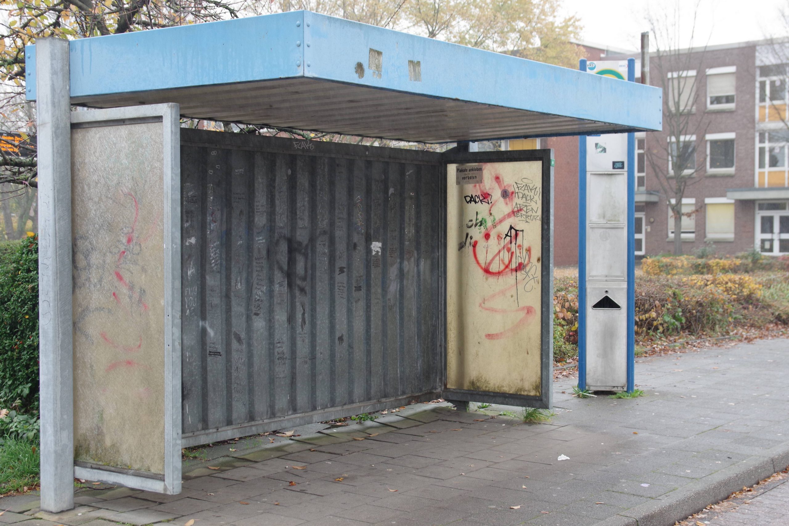 Nicht nur Düsseldorf und Berlin sind immer eine Reise wert, sondern auch Elsdorf. In dieses Städtchen im Rhein-Erft-Kreis bin ich gestern anlässlich der Feier des Volkstrauertags mit dem Bus von Bergheim gefahren. Am Bus(bahn)hof in Elsdorf war ich beeindruckt von den dortigen Wartehäuschen: einladend, gemütlich, super in Schuss. Man kann sich schön hinsetzen und ist vor Wind und Wetter rundum geschützt. Echte Quality-Time beim Warten auf den Bus. (Siehe Fotos.) — Wer will da noch nach Berlin oder Düsseldorf?